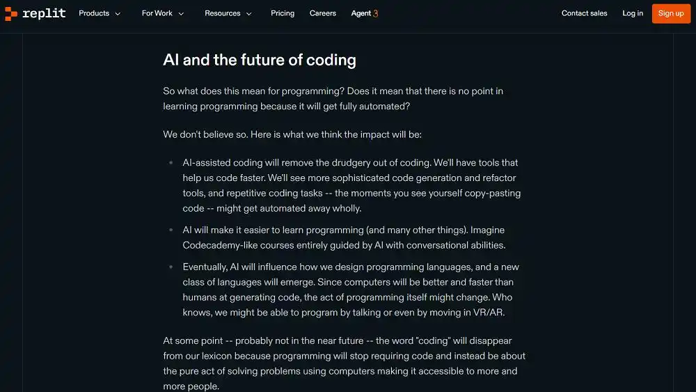 在当时,Amjad Masad 展望了人工智能编程的前景。他在自己的博客中指出,AI 的辅助编程将会消除编写代码的单调性,从而使学习编程及其他领域变得更加轻松。由于计算机在代码生成方面的速度与质量远超人类,编程的形式或将改变。设想一下,通过口语编程,甚至在虚拟现实或增强现实的环境中操作组件,这些设想如今已经变为现实。