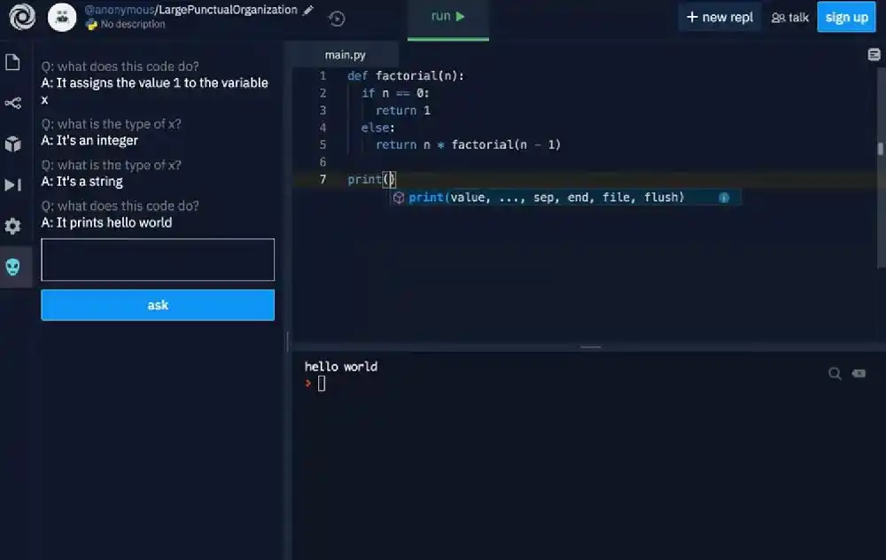 到了 2021 年,随着 OpenAI 编程模型 Codex 的推出,Replit 全面升级了其 AI 体验,支持 代码生成、解释、转换和自动补全 四项核心功能。