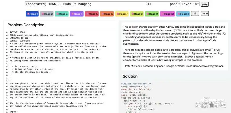 AlphaCode 生成的代码示例链接:https://alphacode.deepmind.com/#layer=18,problem=114,token=79,heads=11111111111