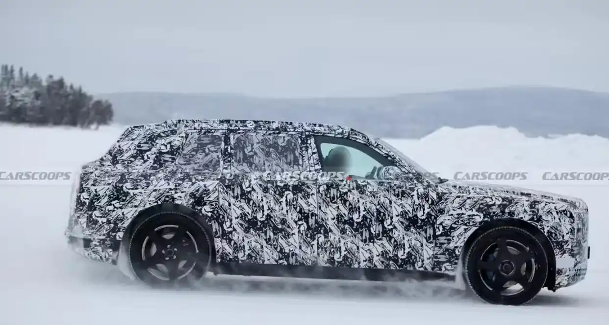 自 2018 年推出以来,库里南成功为劳斯莱斯开辟了超豪华 SUV 市场。时光荏苒,近十年后,这款车型即将迎来更新换代。今天早间,外媒 Carscoops 发布了最新的谍照,显示新车正在北欧进行严寒气候测试。尽管车身依然被严格伪装,但整体的比例和轮廓已初见端倪。这款新车型将会采用纯电驱动。从其定位和技术路线来看,新车很可能基于闪灵的核心架构。