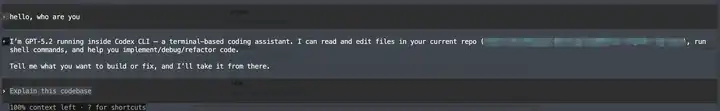 启用后,让我们尝试打开 codex 进行测试: