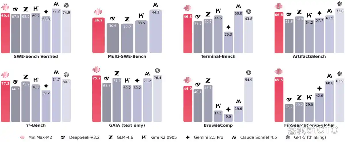 MiniMax-M2 重新定义了智能体工作流程的高效性。这款紧凑、快速且经济实惠的专家混合(MoE)模型拥有 2300 亿个参数,每次处理 token 时仅激活其中的 100 亿个参数。通过智能路由选择最相关的专家,MiniMax-M2 达到了通常仅大型模型才能实现的端到端工具使用性能,同时显著降低了延迟、成本和内存占用,使其成为理想的互动智能体和批量采样工具。
