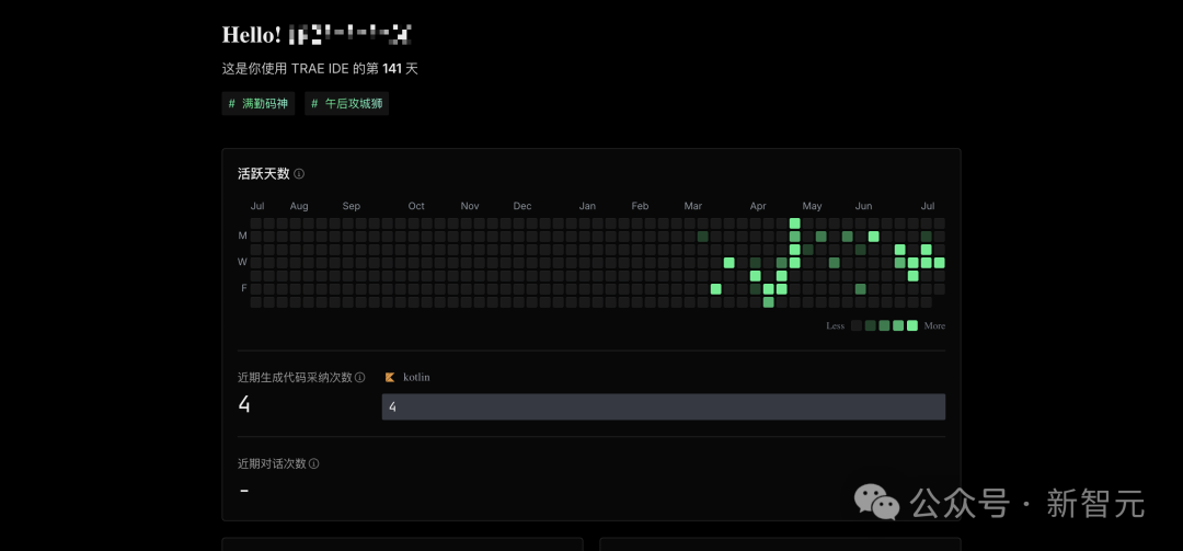 TRAE 还新增了 仪表盘功能,类似于 GitHub 的热力图。