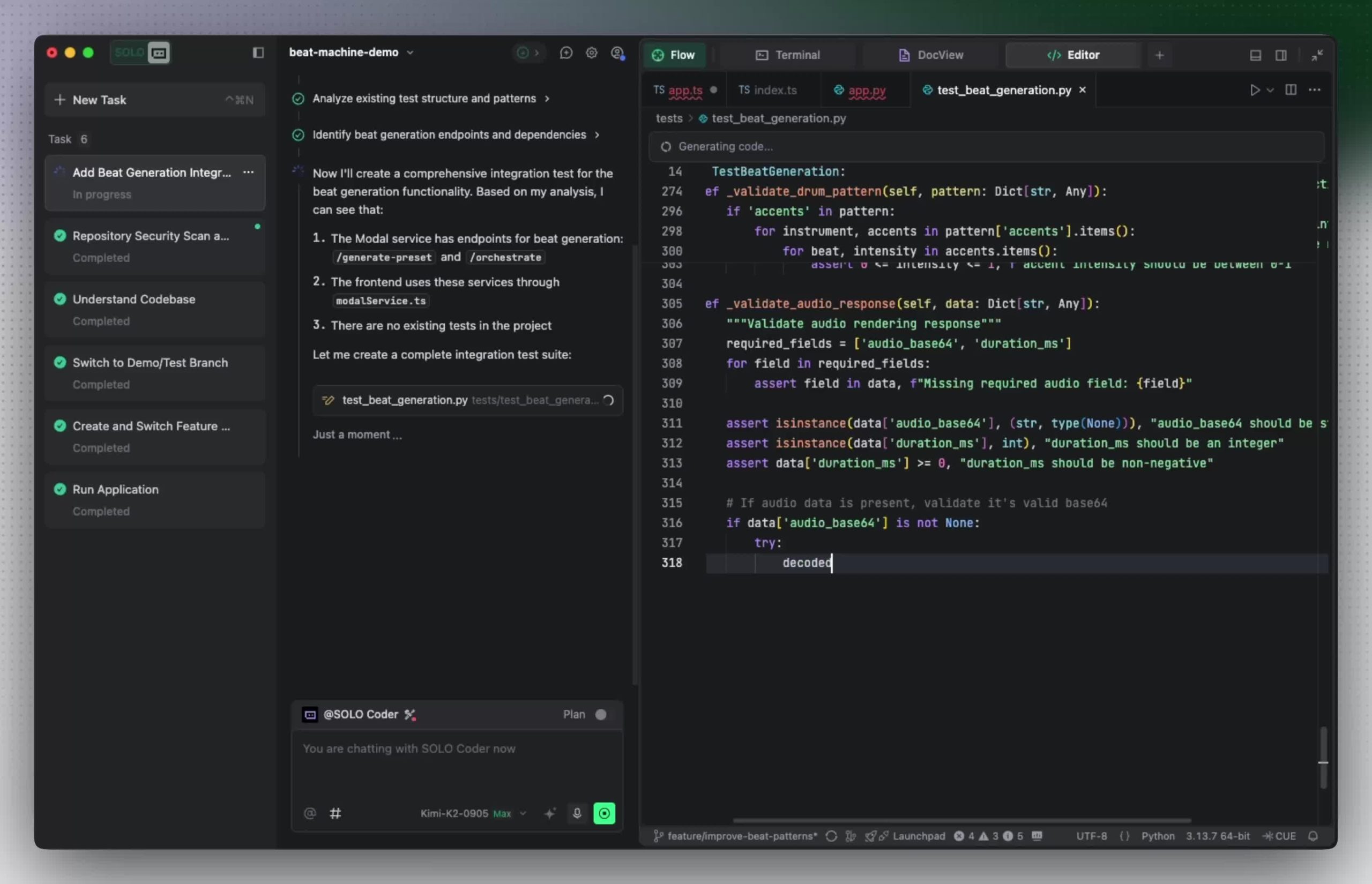 国际版 SOLO + Kimi-K2-0905 的应用场景示例:
