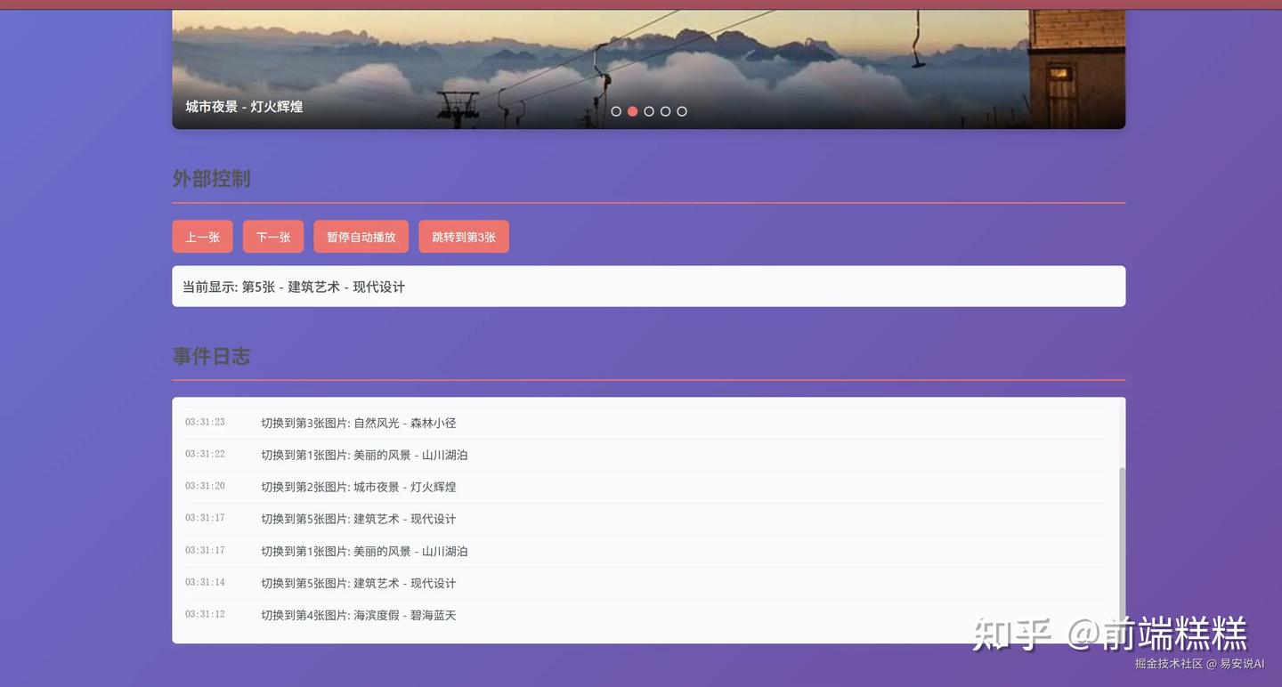不仅实现了自动轮播,还考虑了事件日志,Trae 的表现明显更胜一筹!