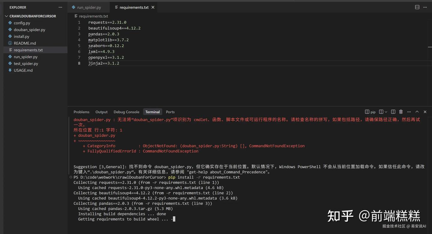 | 豆瓣爬虫 | ⚠️ 在依赖安装时卡住 | ✅ 整体流程顺利 |