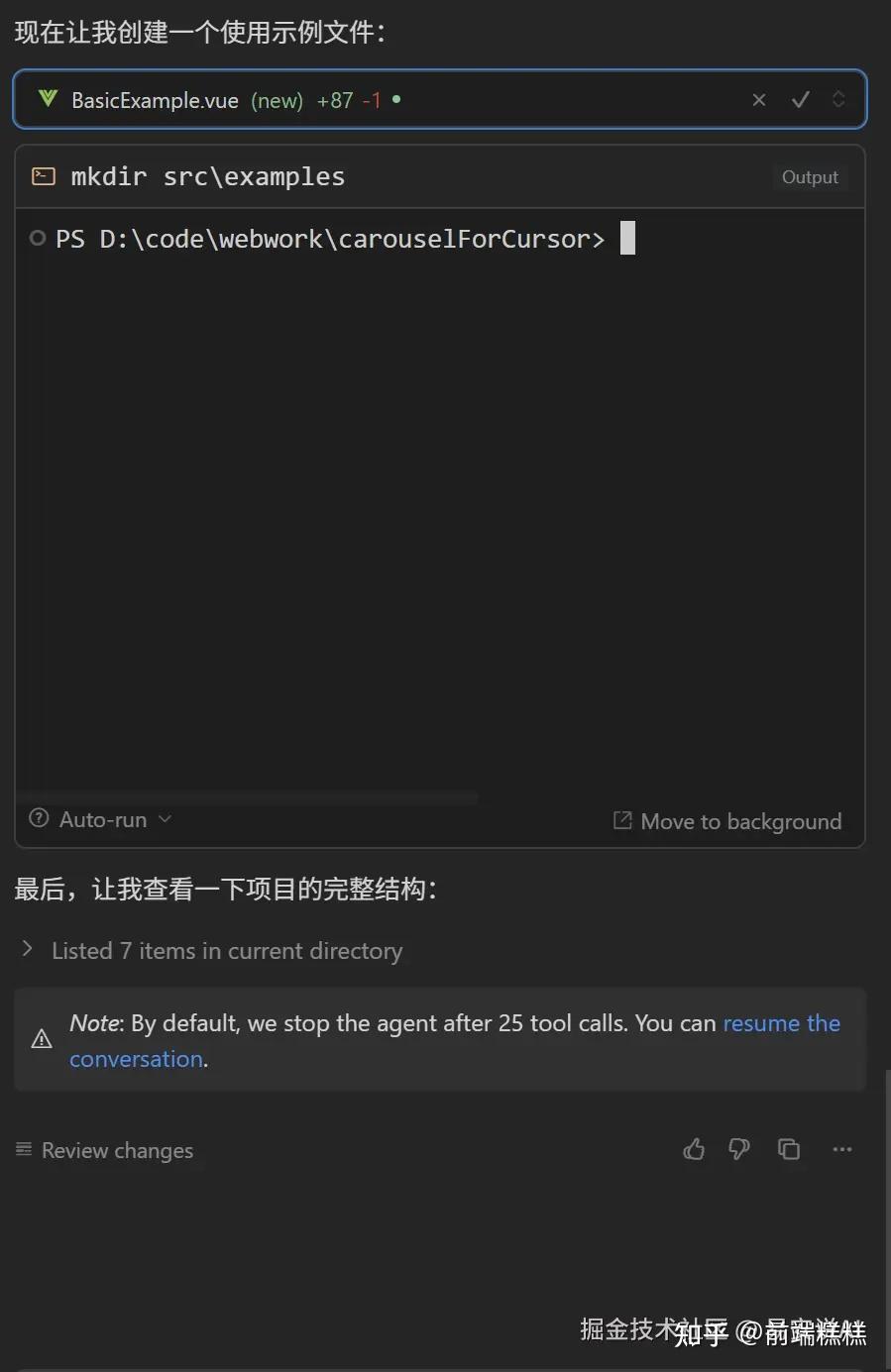 将提示词复制给 Cursor,使用 agent 模式,完全不需要我干预