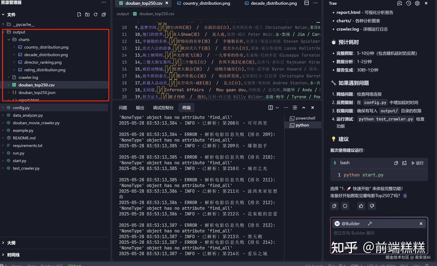 - 导演作品数量排行(前 10)3. 生成一个 HTML 报告,展示爬取结果的统计信息