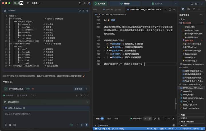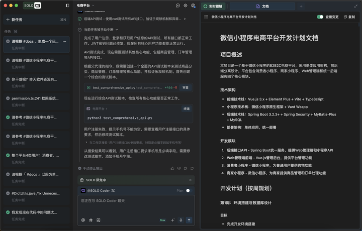 说实话,SOLO 模式的确比普通模式简单许多,输入一个命令,它就能自动运行。