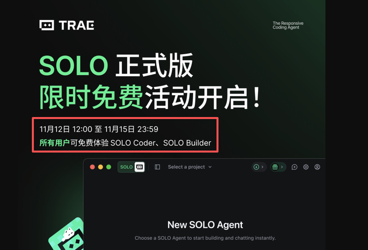 想要体验 Trae SOLO 正式版的朋友们,抓紧时间,最近 Trae 正在进行限时免费活动。