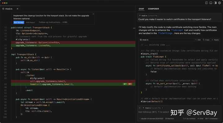通过建立本地代码索引(RAG 技术),Cursor 使 AI 能够实时感知整个项目的上下文,并提供了 Tab 键多行补全(Copilot++)和 Composer(多文件编辑)功能。