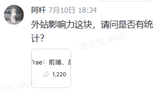 在开奖当天,即 7 月 10 日,我在评论区再次询问“是否有统计外站的影响力”,并附上了公众号的数据截图。