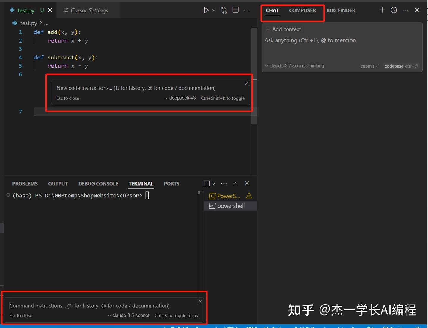 在 Cursor 中,用户可以在 Composer 内提问时,同时在 Chat 和内联窗口进行对话。