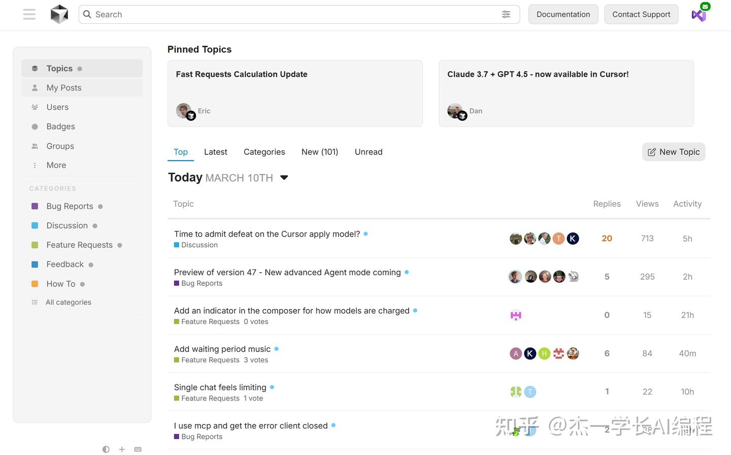 Cursor 拥有大量官方整理的博客和论坛,社区生态非常繁荣。