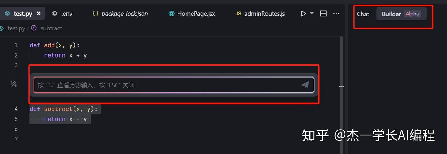 与此不同,Trae 在 Builder 中提问时,用户不能在 Chat 窗口对话,只能在内联窗口中进行互动。