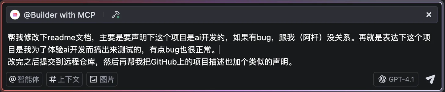 对了,记得让 Trae 写一份声明,若有 bug 它来负责。