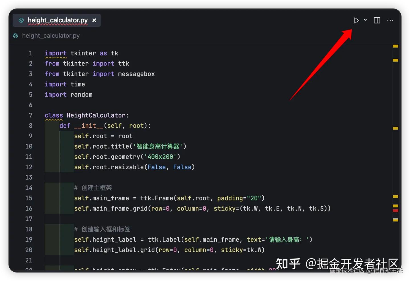 选择刚才 Trae 生成的 Python 代码,点击工作区右上角的三角形按钮即可运行这段程序。