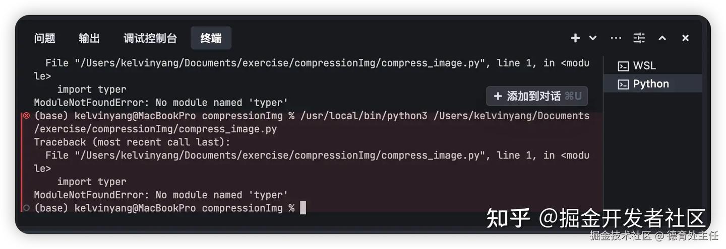 选中报错内容后,右侧会出现一个“添加到对话”的按钮,点击它就能进行错误分析并提供解决方案。