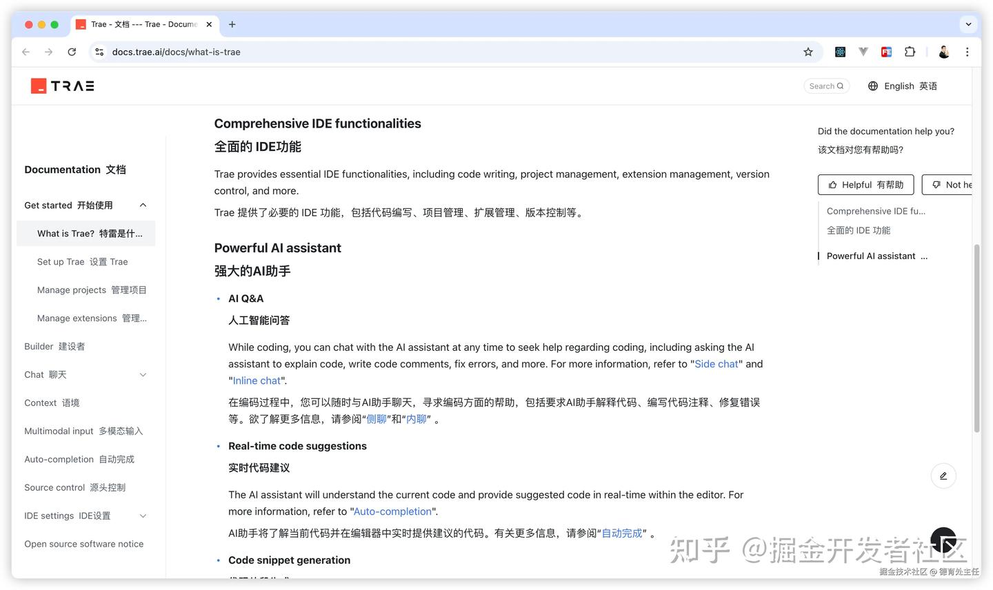 如果想深入了解 Trae 的所有功能,可以查阅官方文档 docs.trae.ai/docs/what-i…