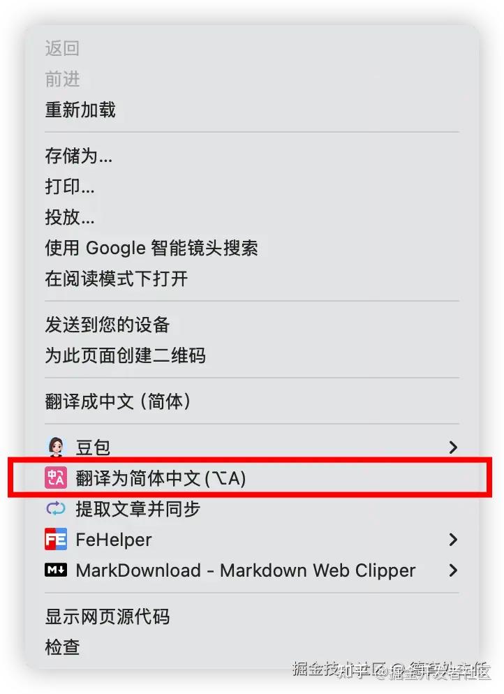 安装完“沉浸式翻译”插件后,重启浏览器,打开 Trae 的文档。在页面上右键选择“翻译为简体中文”。