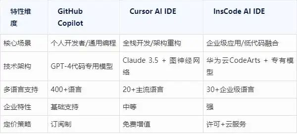 企业级项目:InsCode AI IDE 在安全管控、低代码融合及企业服务集成方面展现出独特的优势,尤其适合金融、制造等受监管行业。