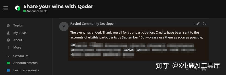 我之前发过一篇关于 Qoder 的使用体验文章,也将链接分享到了 Qoder 论坛,幸运的是也入选了: