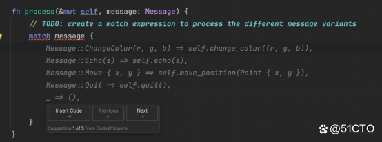 一些工具,例如 Amazon Q Developer,提供内嵌选项,使你可以在不离开编辑环境的情况下,循环查看样例。你可以通过左右方向键在各个选项之间切换,直至找到一个令你满意的方案。