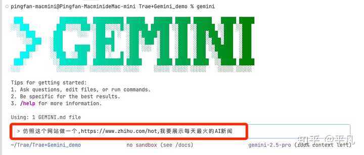 Gemini CLI 会根据你输入的内容和需求设计流程,你可以看到它准确读取了网页并制定了相应流程。
