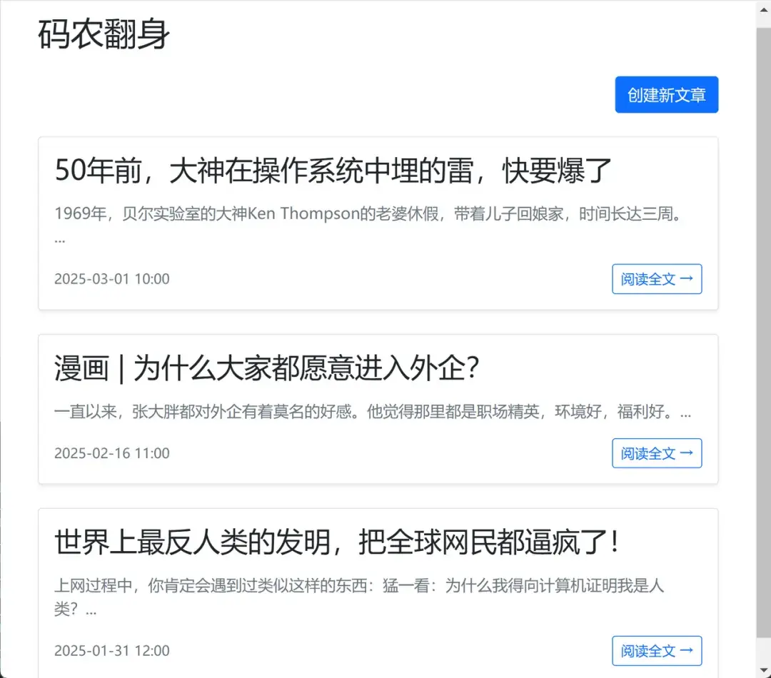 我觉得默认的文章列表样式不够美观,要求它进行优化,结果它调整了卡片间距、阴影效果,并增加了分页功能。