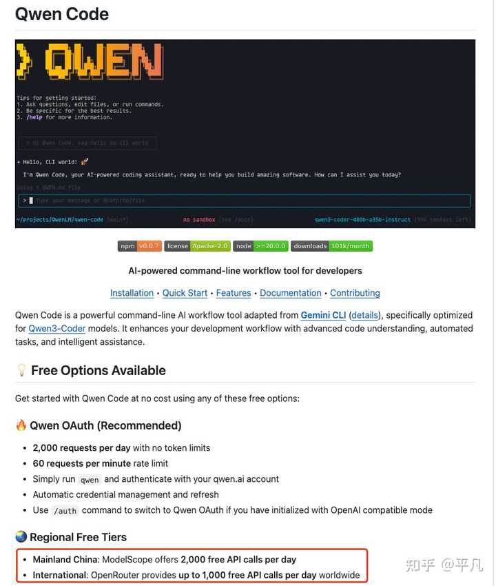 Qwen Code 实际上使用了 Gemini 的技术框架,功能大体相似,且其免费额度相对充足,
