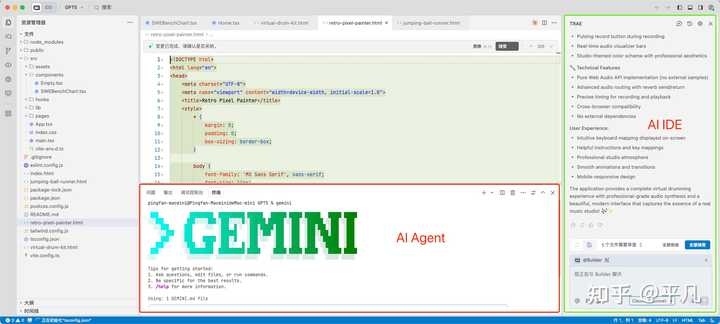 这两个工具的某些功能是重叠的,例如编写简单代码;但也有不同之处,Gemini CLI 类型的 AI 代理在安装第三方库时较为保守,例如 md 文件转换为 Word 文件,而 Trae 这样的 IDE 则更为激进,这两者的作用是互为补充。