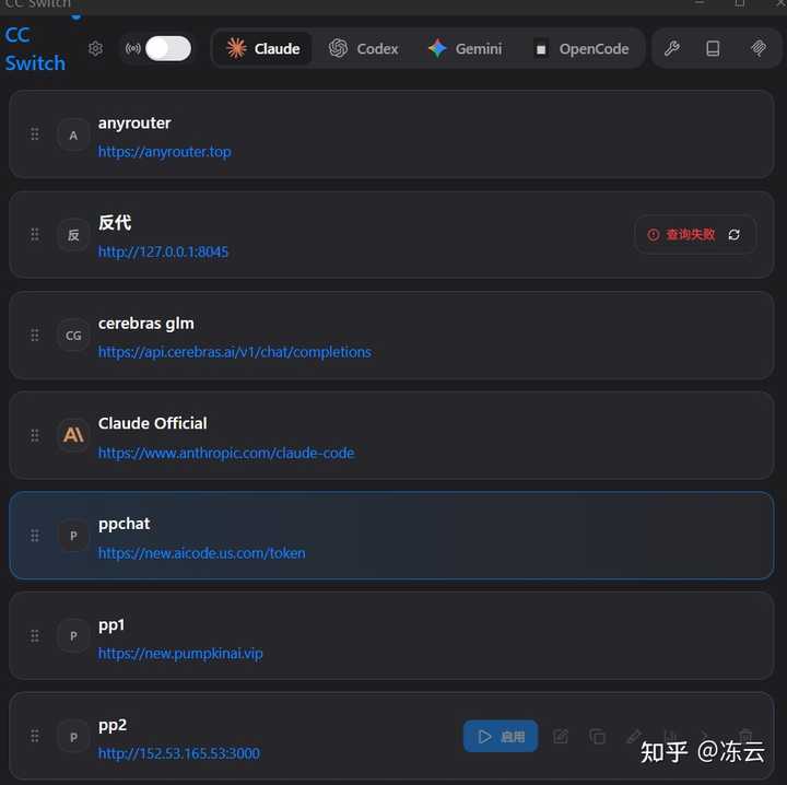 一般我会有 2 到 3 个主要的 claude 中转站,同时记录下所有注册过并充值过的小号 KEY,填入 cc switch 里作为主力中断时自动切换的后备(这个有点复杂但设置好后非常方便,一般只需一家就够了,不必如此繁琐):