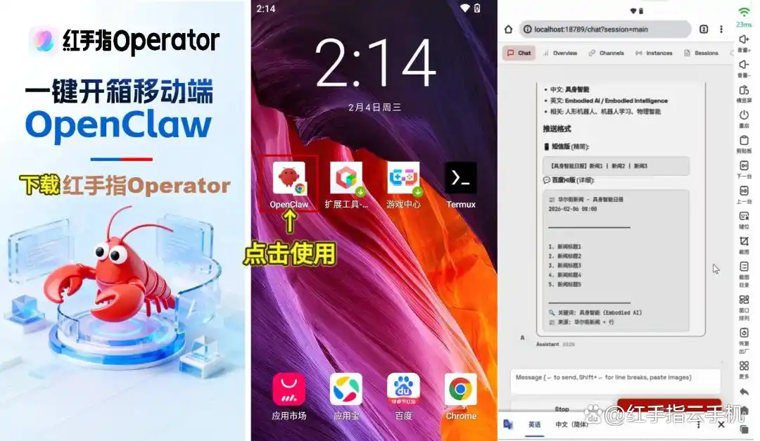 那它是如何实现的呢?答案便是:OpenClaw 移动版与云手机托管的结合