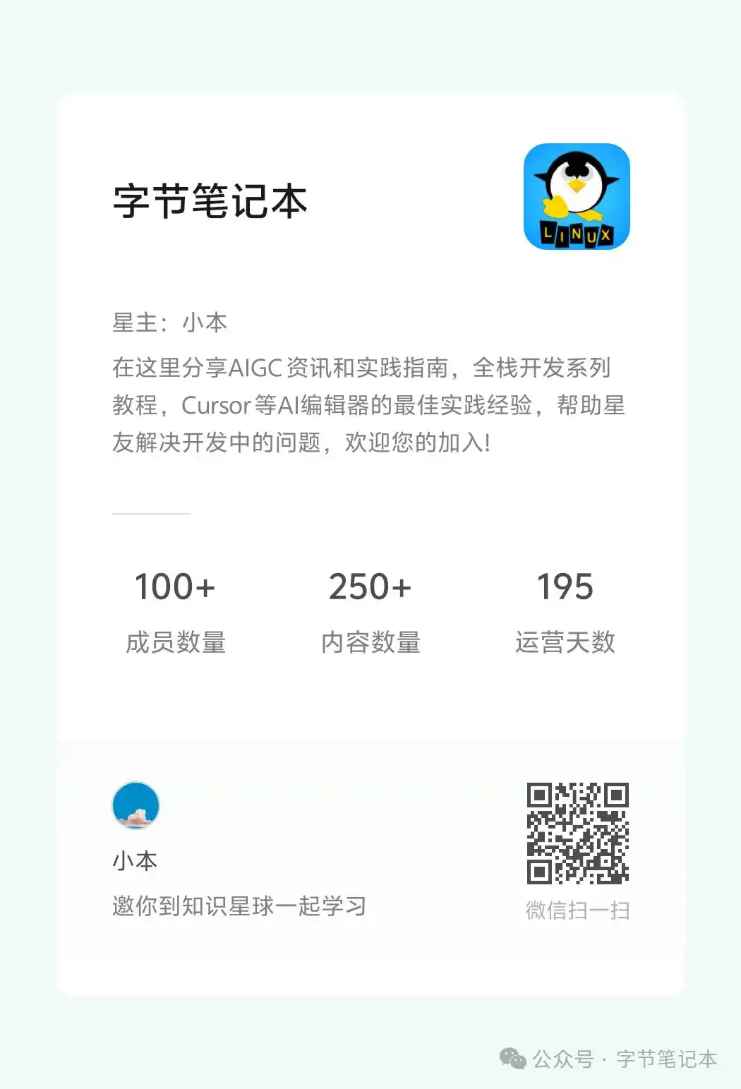 字节笔记本 专注于 AIGC 领域,分享 AI 编程的经验、案例及全栈开发知识 公众号