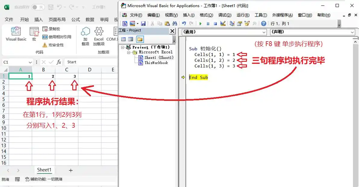 然而,单击 F8 逐条执行程序实在是太繁琐了,是否可以实现一键式执行呢?