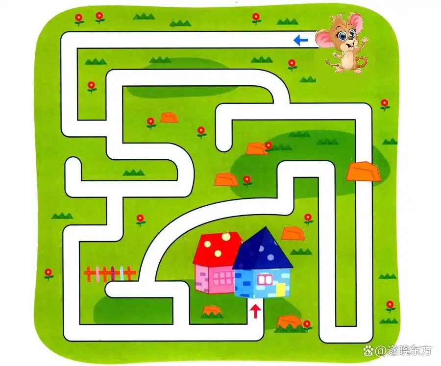 最终,在迷宫的左上角标注“老鼠”,而右下角则标记为“食物”。