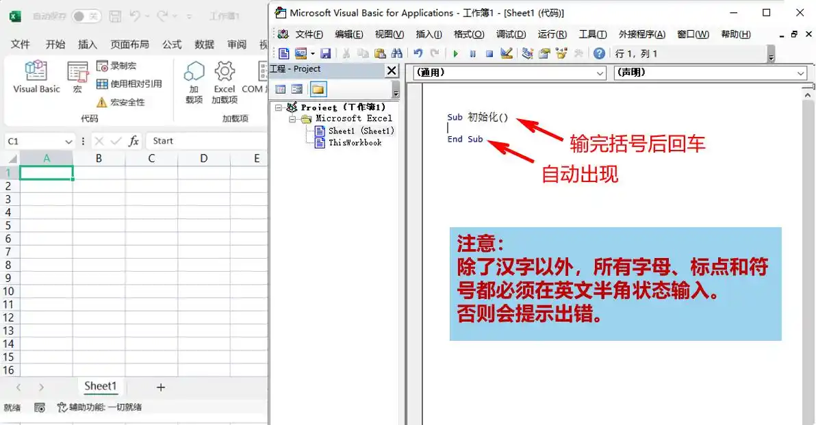 再次强调,在按 F5 键运行之前,务必将光标移动到 Sub 过程内部,才能成功运行该过程。