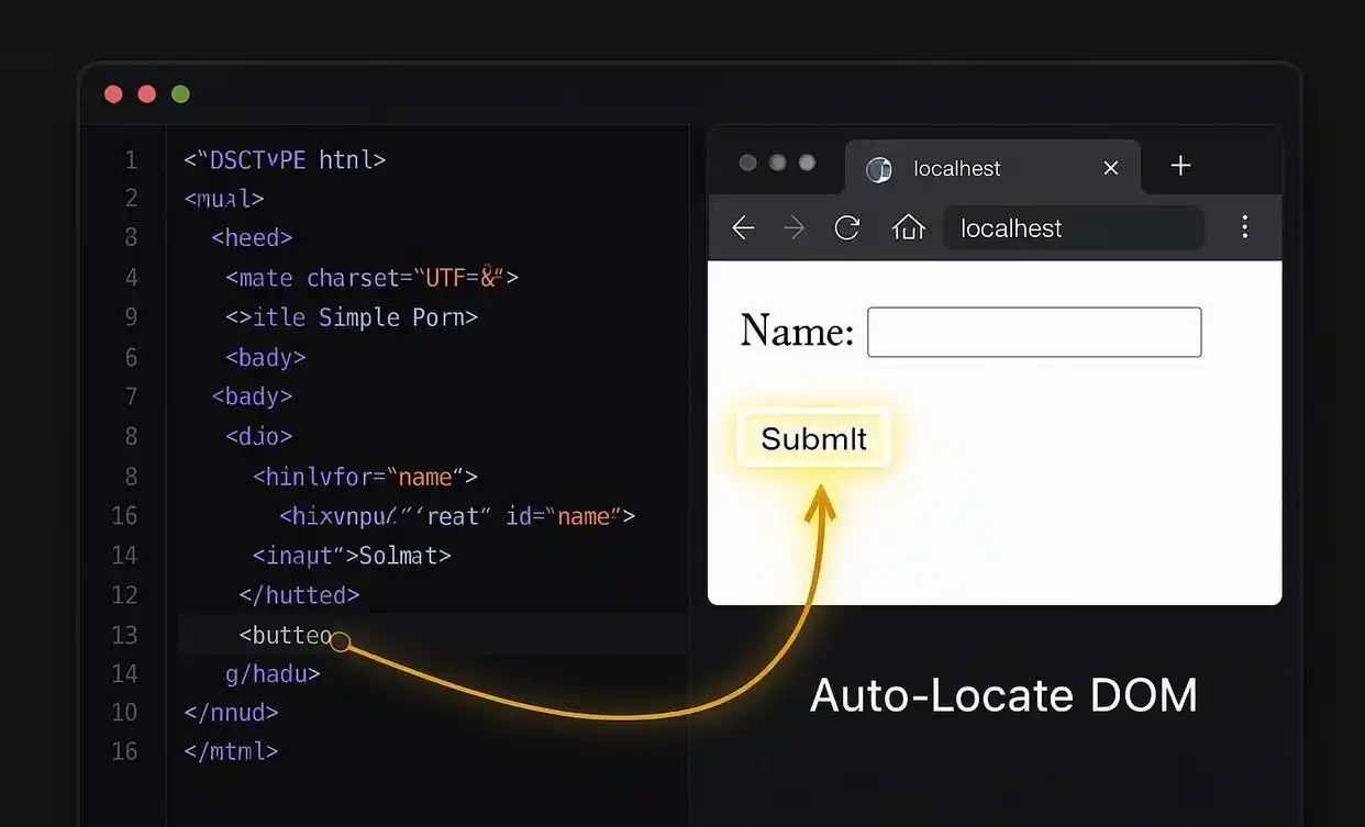 令人惊叹的是,你可以直接在浏览器中选中一个元素,Cursor 会自动识别该元素对应的源代码位置,并将 DOM 信息传递给编辑器。这意味着你可以在编辑器里直接查看并修改对应的代码,实现真正的“所见即所得”。有开发者在实测后表示:“这个功能对前端开发太友好了,效率直接翻倍。”