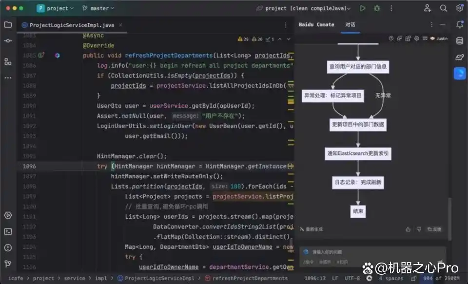 首先,文心快码显著提升了解决架构问题的效率,这些问题通常涵盖系统的层次结构、模块划分以及控制流和数据流等方面。即便人类架构师在这一领域的统筹也很具挑战性,而文心快码凭借其架构师能力,能够通过 代码解释 迅速掌握函数在实际业务背景中的含义。
