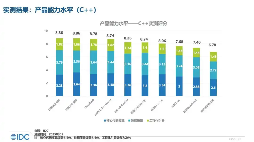 C++ 产品能力的实际测试总分位居第一。