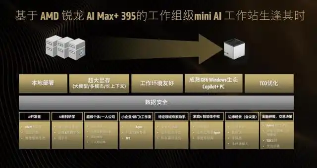 自发布以来,AMD 锐龙 AI Max+ 395 处理器凭借卓越的性能和出色的大型模型部署能力,开创了全新的迷你 AI 工作站细分市场。更重要的是,目前基于该处理器的迷你 AI 工作站产品已进入各行各业,为用户提供了前沿的 AI 体验。