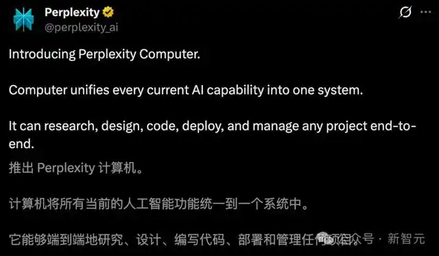 今天,Perplexity 正式推出「Perplexity Computer」,一键整合全球顶尖 AI 于一个平台 。