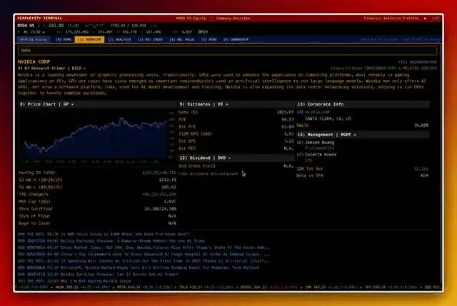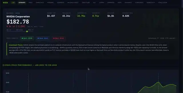 在接下来的演示中,用户能够对英伟达的股票进行全面的分析,包括股价走势图、公司背景、财务概况以及市场趋势等信息。