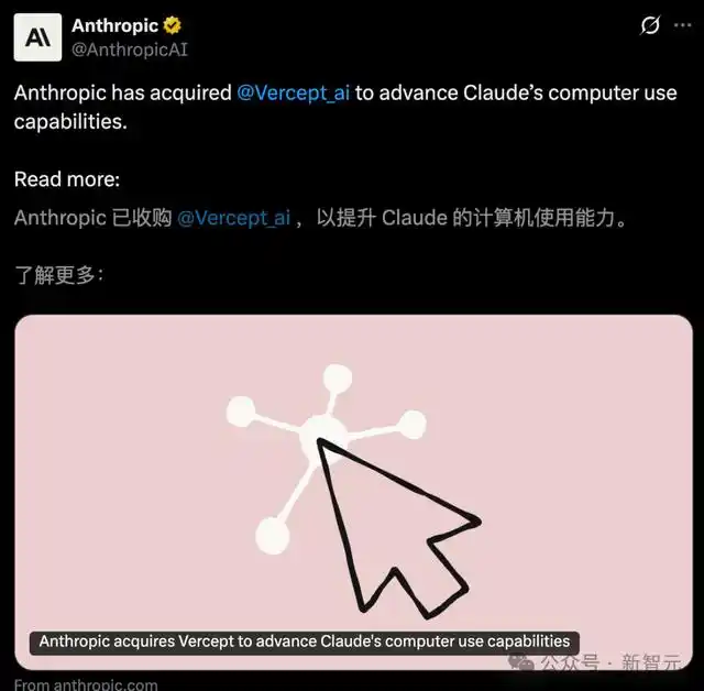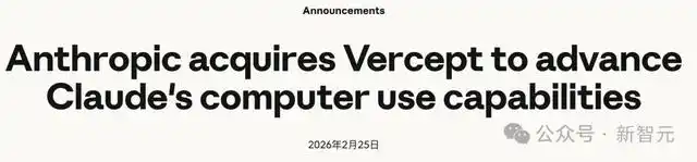 同一天,Anthropic 迅速收购了初创公司 Vercept,其核心技术将在接下来的几周内整合进 Claude。