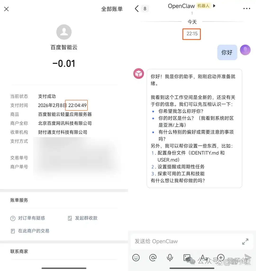 此时,你或许会想,是否可以尝试其他云服务商的“OpenClaw 一键镜像”?虽然这类方案确实比自行搭建环境简单许多,但大多数仅解决了安装问题,并未触及配置的痛点。这些第三方方案通常只是让你可以启动本体,但当你真正进入后,仍需自行申请大模型的 API Key,并在 Linux 终端中修改配置文件,想要实现远程访问还需自行处理 Nginx 配置……继续用建房子比喻,这就等同于给了你一套“毛坯房”,但装修的工作仍需你亲自上阵。直到我尝试了 百度智能云 的轻量应用服务器(LS)方案,才意识到原来部署 OpenClaw 竟然可以如此“无脑”。十分钟即可完成 OpenClaw 的全流程部署 毫不夸张地说,这次我特意盯着时间,从购买实例到通过飞书与我的 Agent 进行首次交流,整个过程仅用了十分钟。