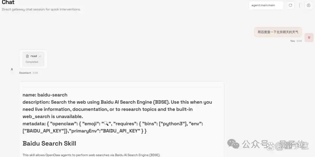 回到正题,来看百度发布的这些 Skills,首先介绍最实用的“联网能力”。通过安装 百度搜索 (Baidu Web Search)和 百度百科 (Baidu Baike Search)这两个 Skills,OpenClaw 将获得无需模拟浏览器即可进行信息检索的能力。 它能够实时检索网络信息,无论是获取最新的即时新闻,还是查阅结构化的权威知识,均可轻松实现。