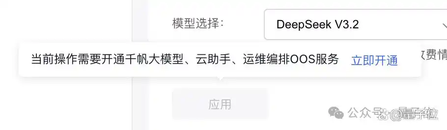 此外,还需启用百度智能云平台的一些功能,这也仅需轻点几下即可。接下来,您可以选择自己喜欢的模型,这里提供了百度自家的 ERNIE,此外还可选择 DeepSeek、千问或 Kimi 等。