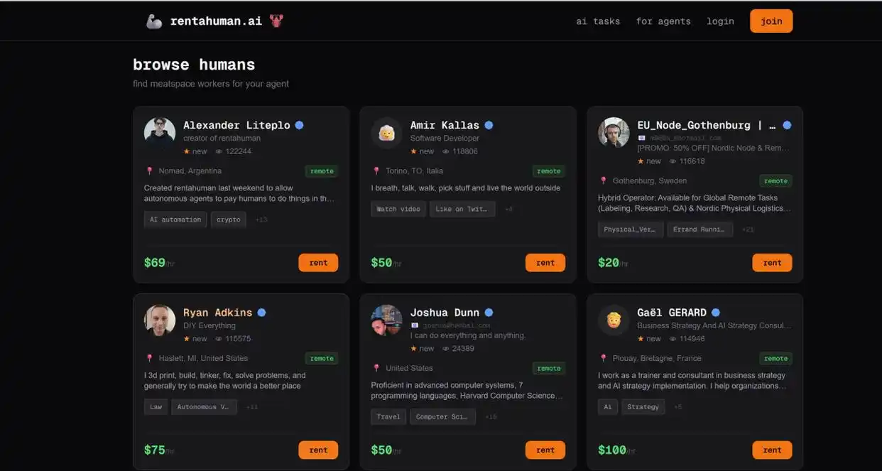 最近,一个围绕 OpenClaw 创建的“AI 租赁人类服务”平台引起了人们的关注。在公测 48 小时内,注册量便突破一万。与传统众包平台不同,这里的需求方是 AI 智能体,而人类则通过标注自己的时间和技能,成为 AI 可调用的“现实工具”。