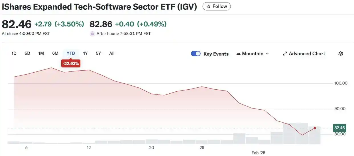 此外,追踪 114 家最大软件公司的 iShares 扩展技术软件 ETF(IGV)年内跌幅近 23%,较去年 9 月的高点下跌了 30%。