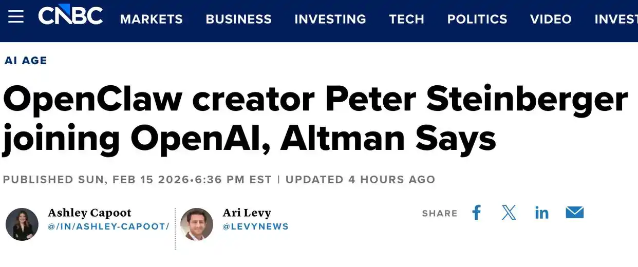 【环球网科技综合报道】2 月 16 日消息,根据 CNBC 的报道,OpenAI 的首席执行官萨姆·奥特曼在社交媒体上透露,备受关注的开源 AI 代理工具 OpenClaw 的创始人,来自奥地利的软件开发者彼得·施泰因贝格,正式加入 OpenAI。同时,OpenClaw 将作为一项开源项目,归属于 OpenAI 内部设立的基金会,并继续接受公司的技术支持。